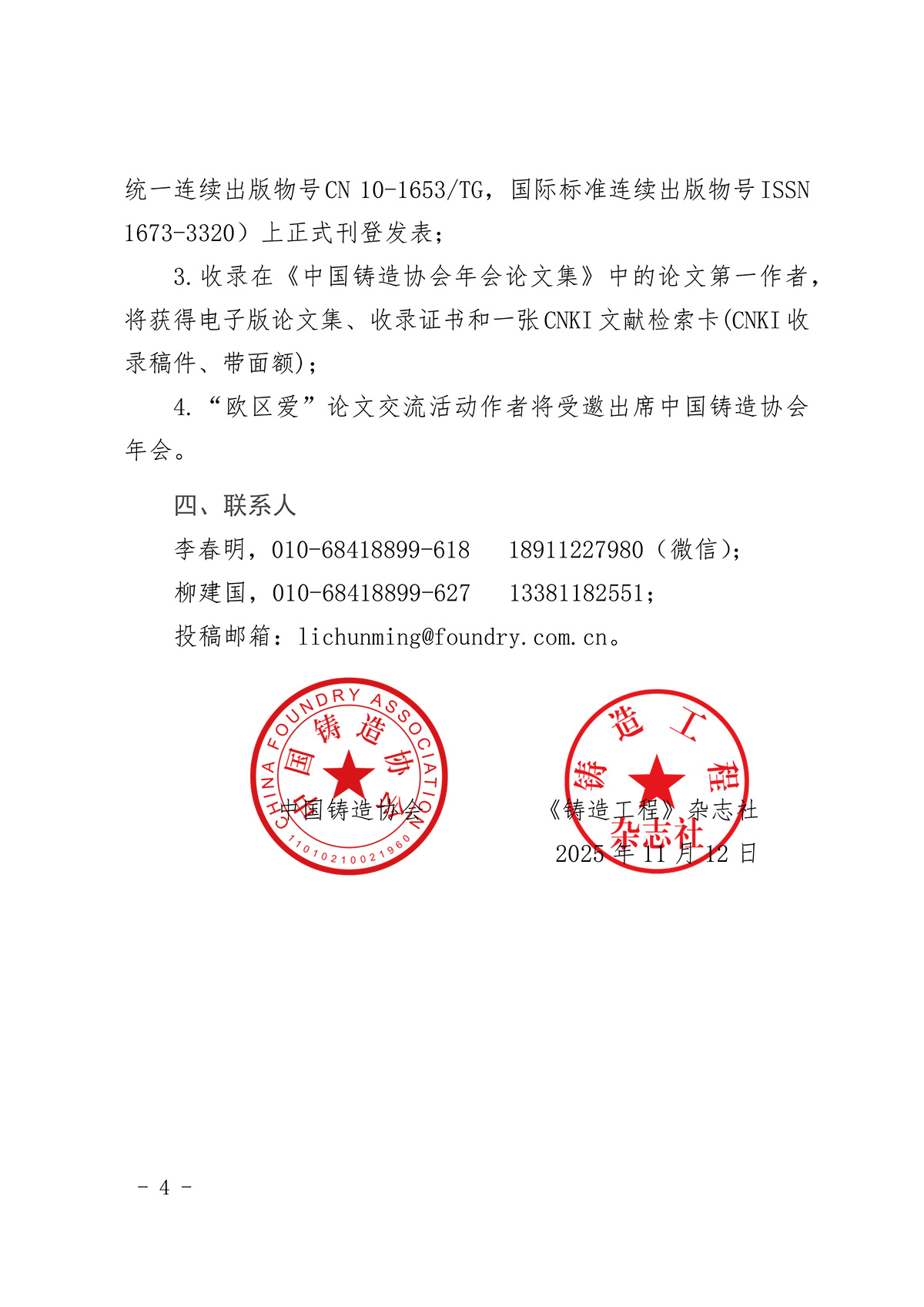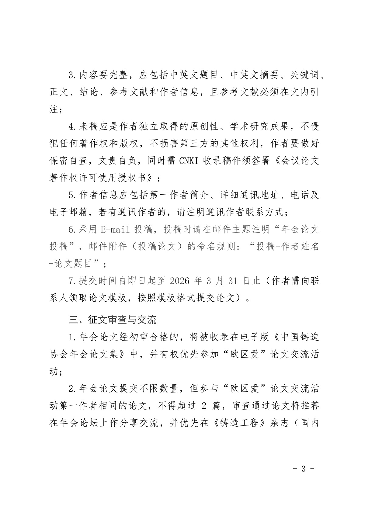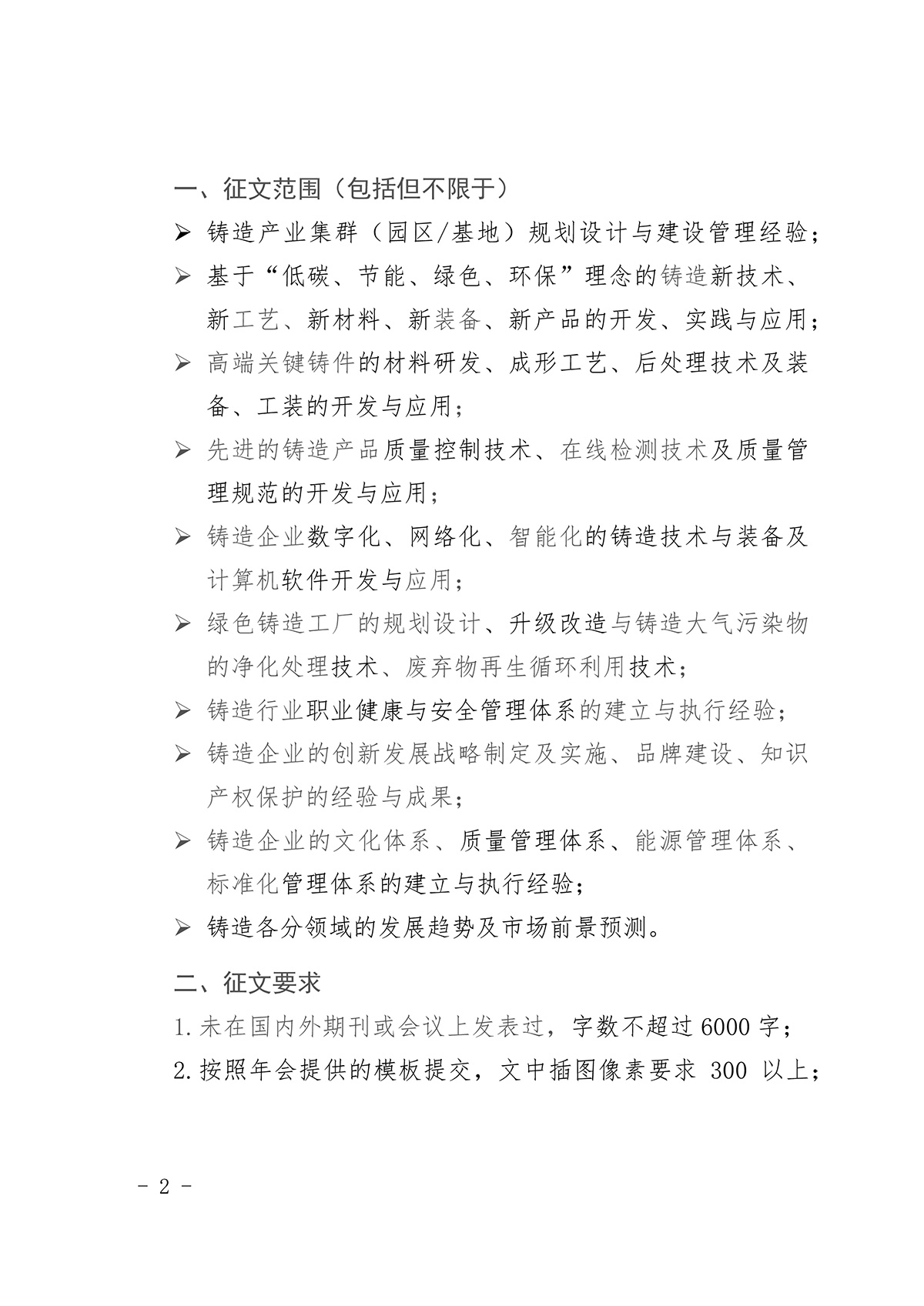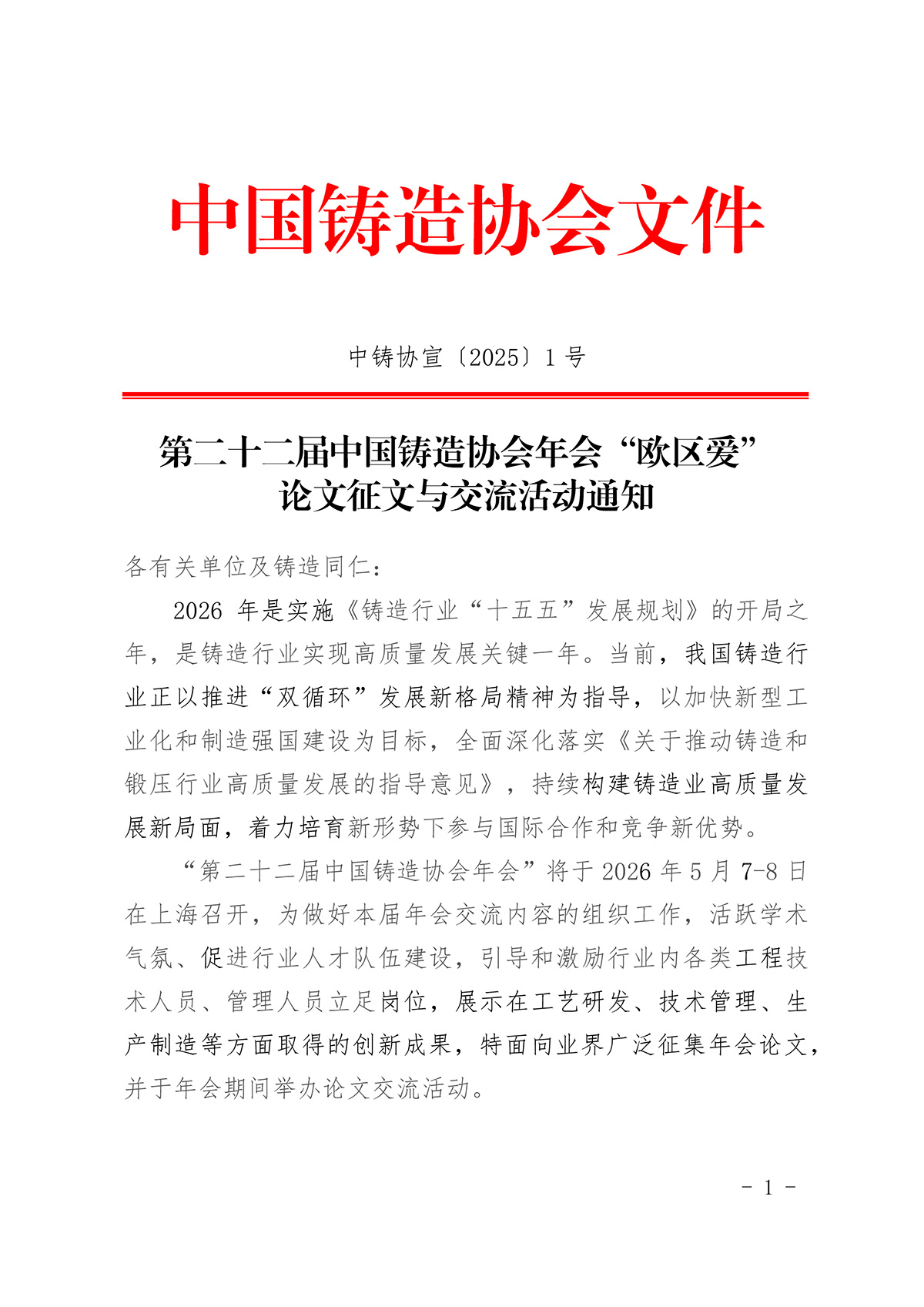 第二十二届中国铸造协会年会“欧区爱”论文征文与交流活动通知