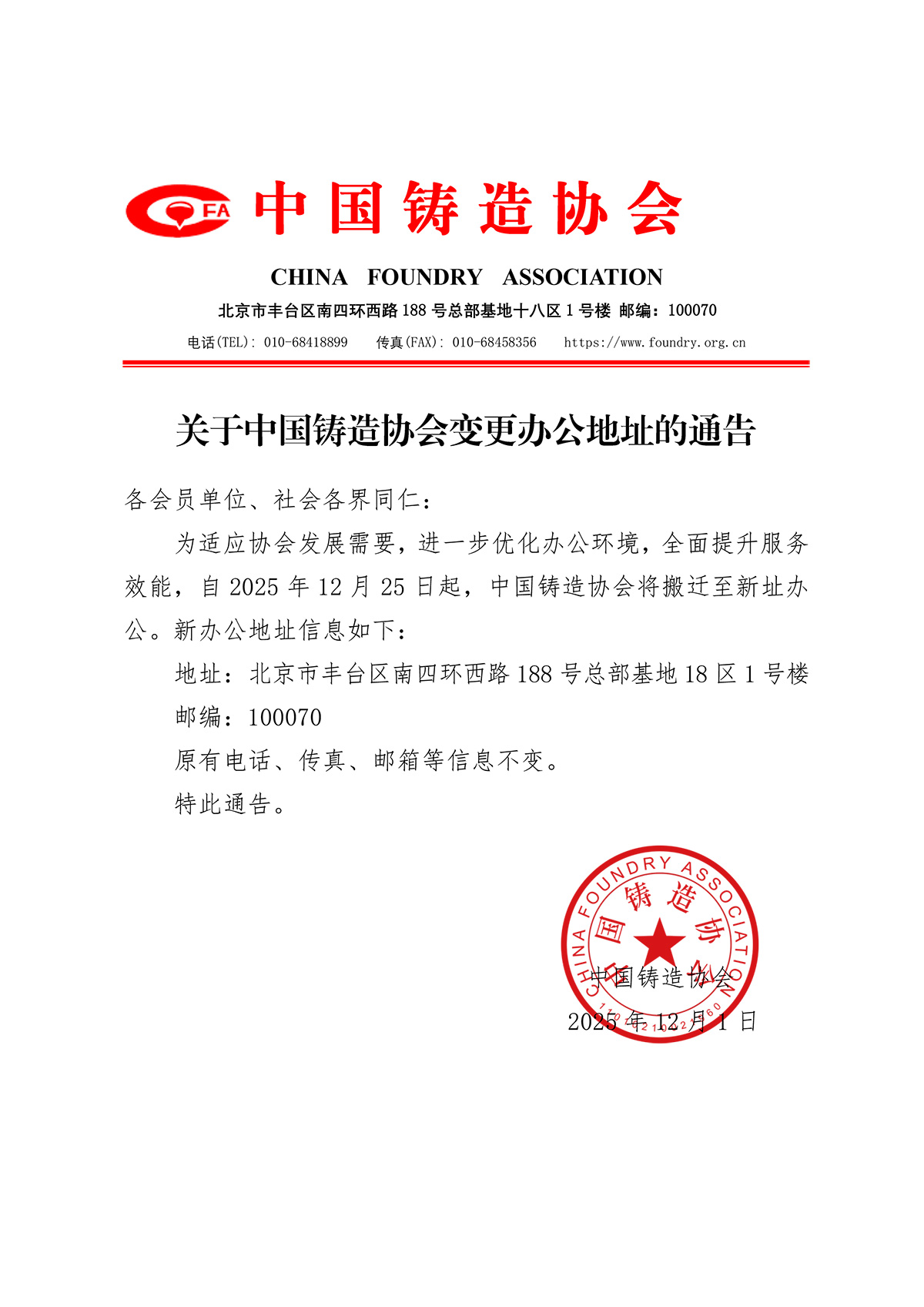 关于召开“第二十二届中国铸造协会年会暨第十届会员代表大会”的预通知
