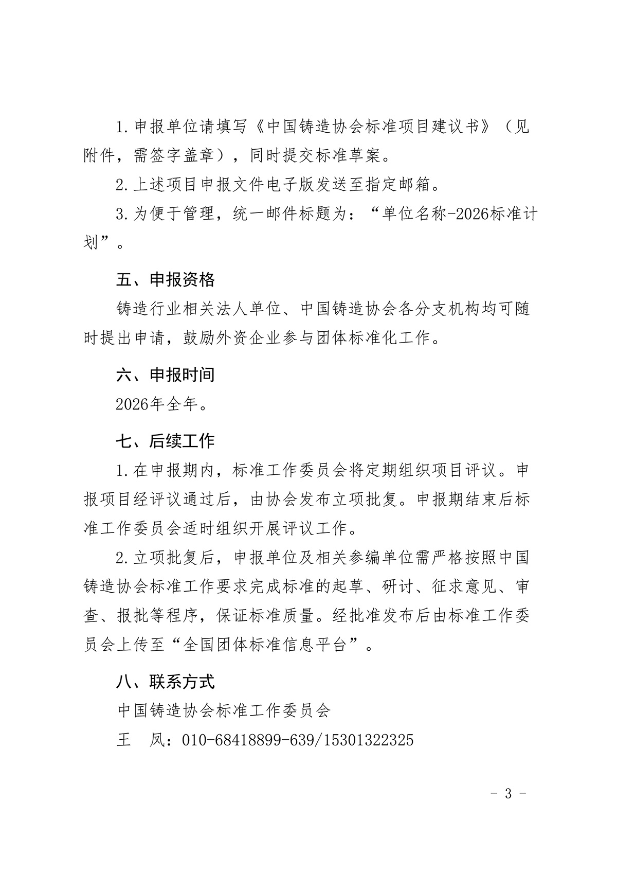 中国铸造协会标准制(修)订项目建议书