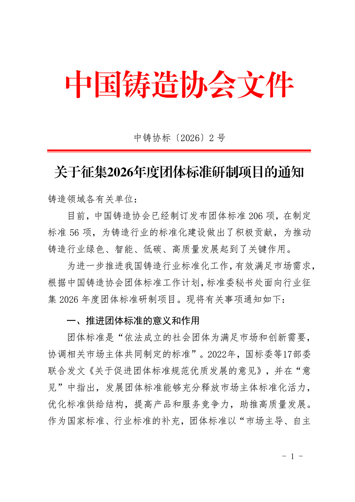 关于征集2026年度团体标准研制项目的通知
