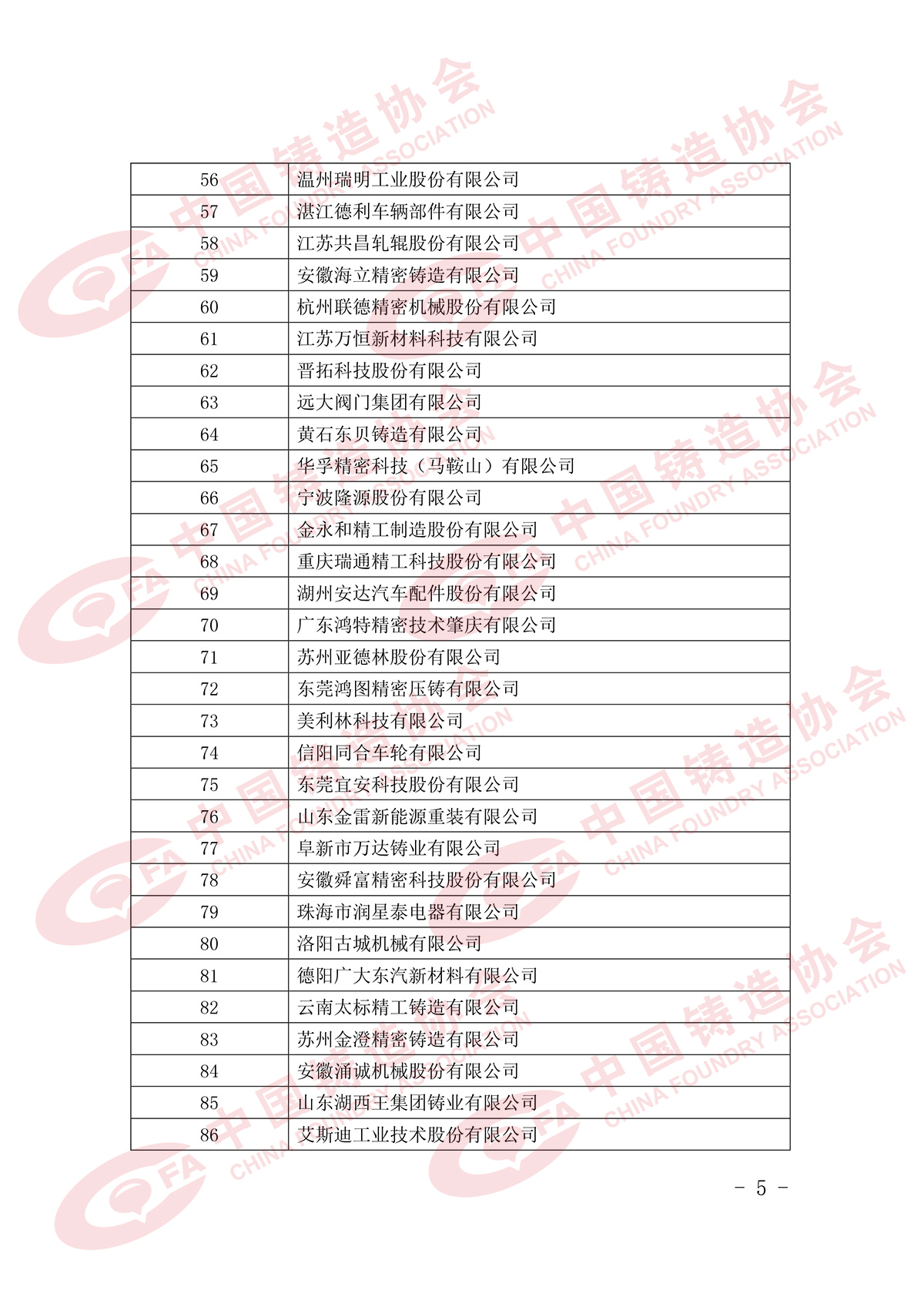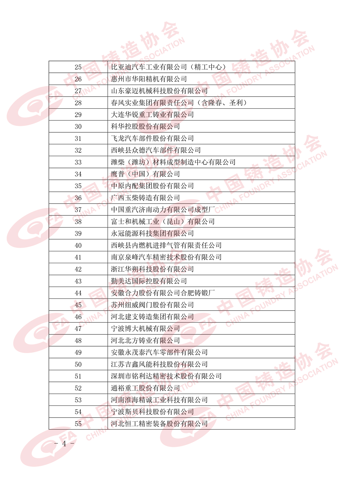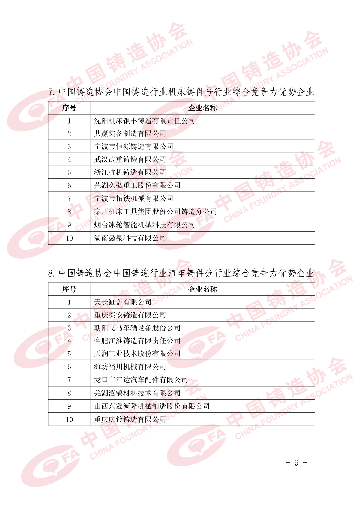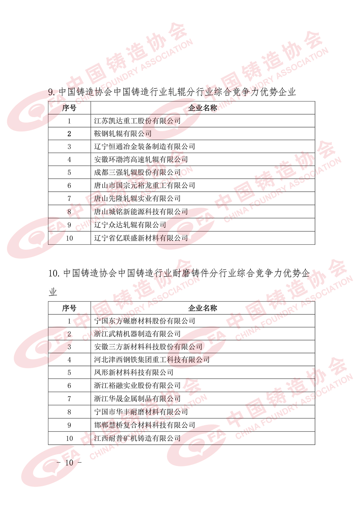 关于中国铸造协会中国铸造行业综合竞争力优势企业评选结果的公示