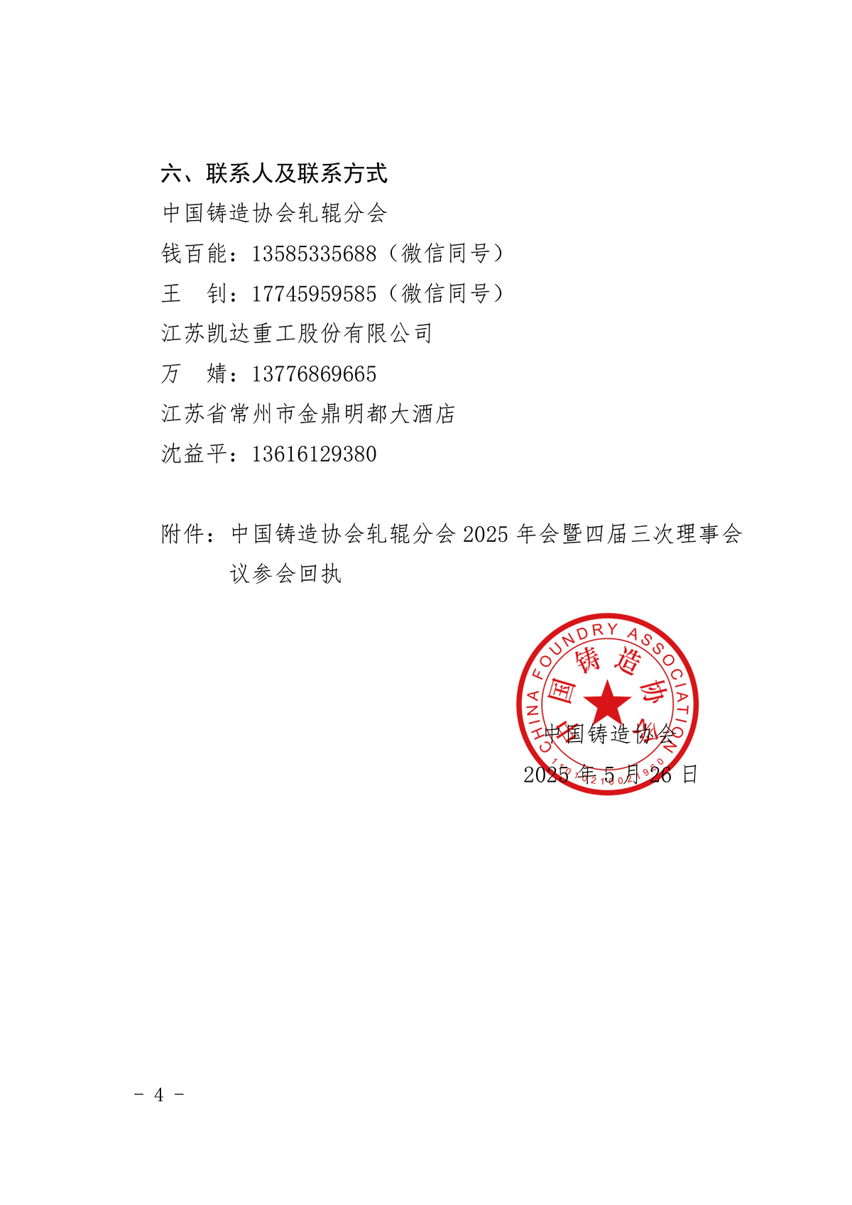 中国铸造协会轧辊分会2025年会暨四届三次理事会议参会回执