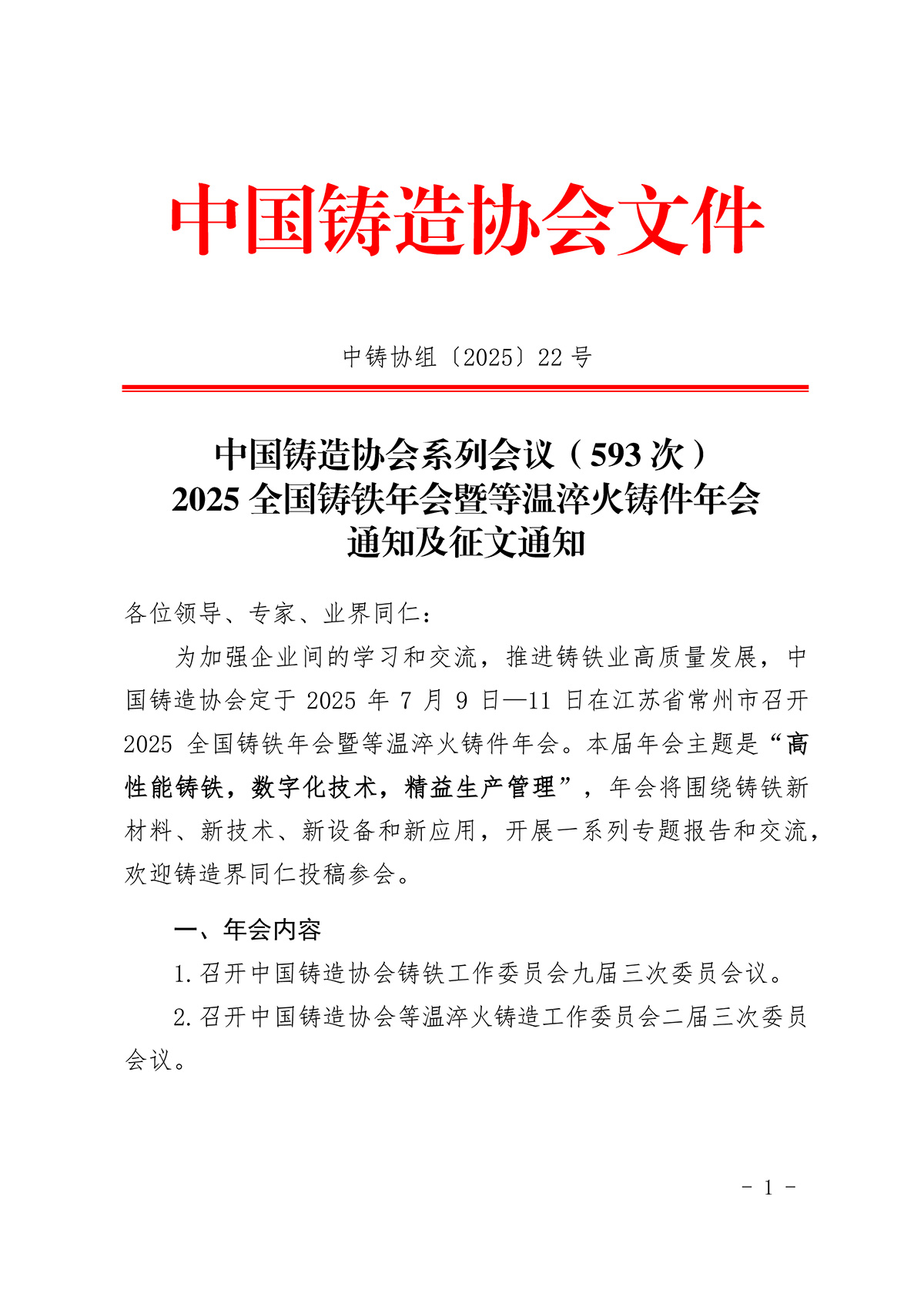 2025全国铸铁年会暨等温淬火铸件年会通知及征文通知