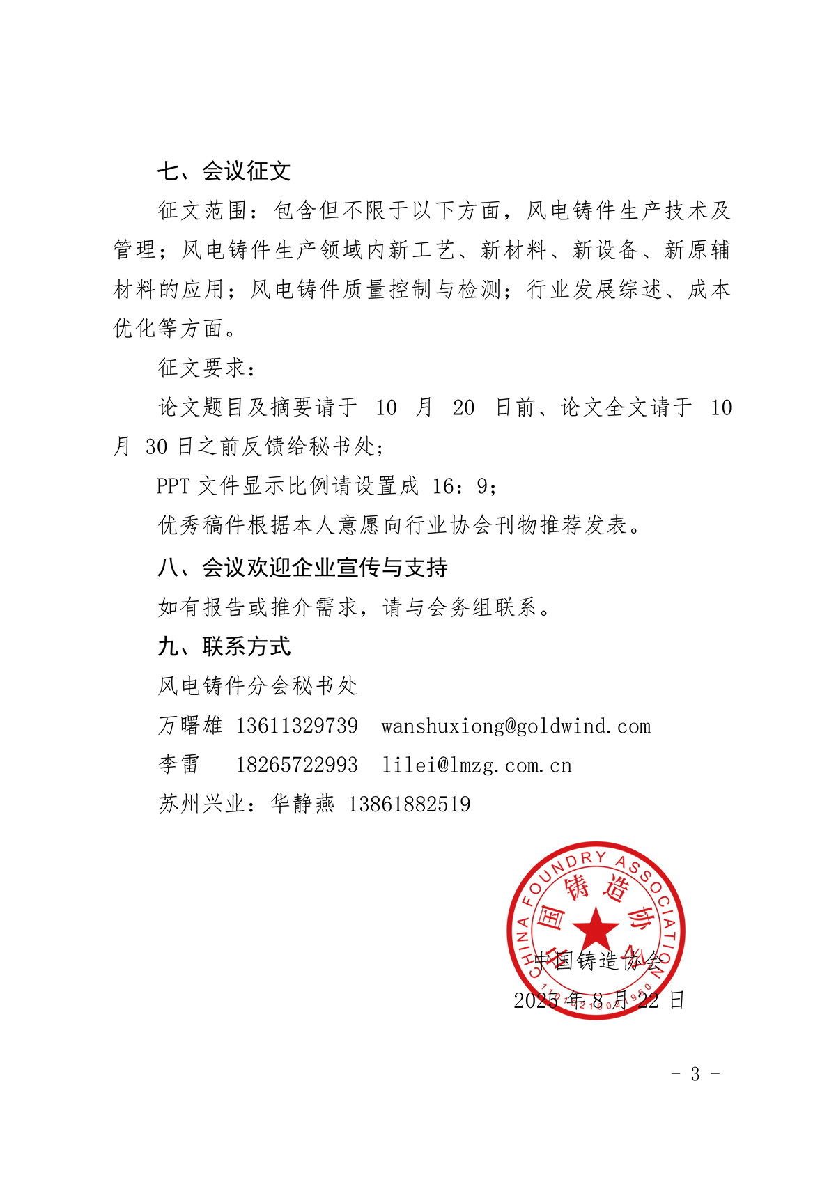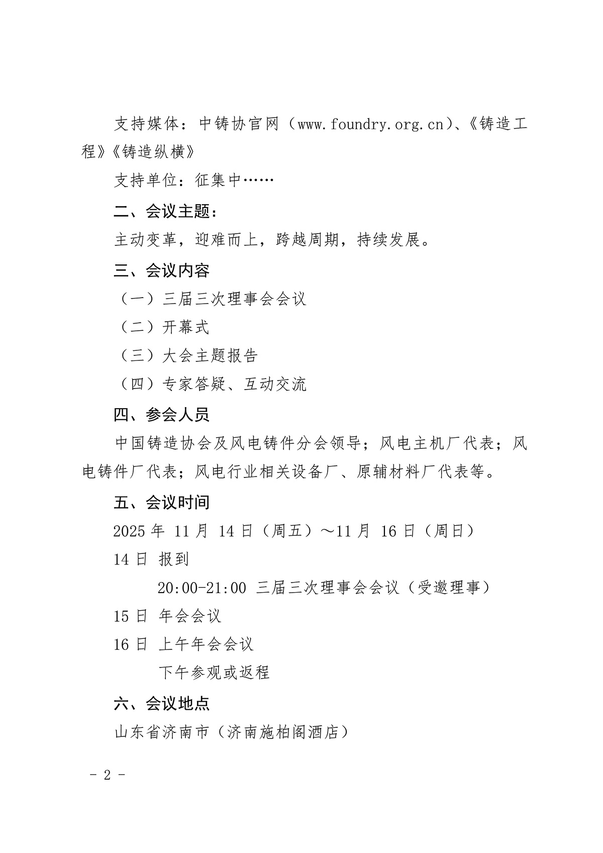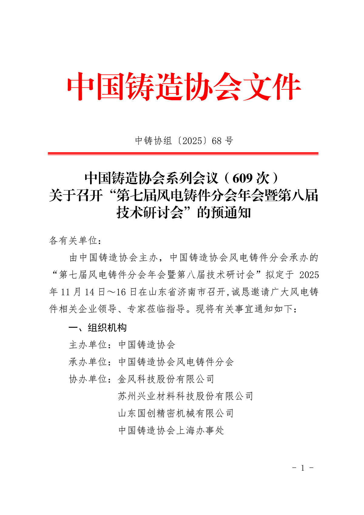 “第七届风电铸件分会年会暨第八届技术研讨会”的预通知