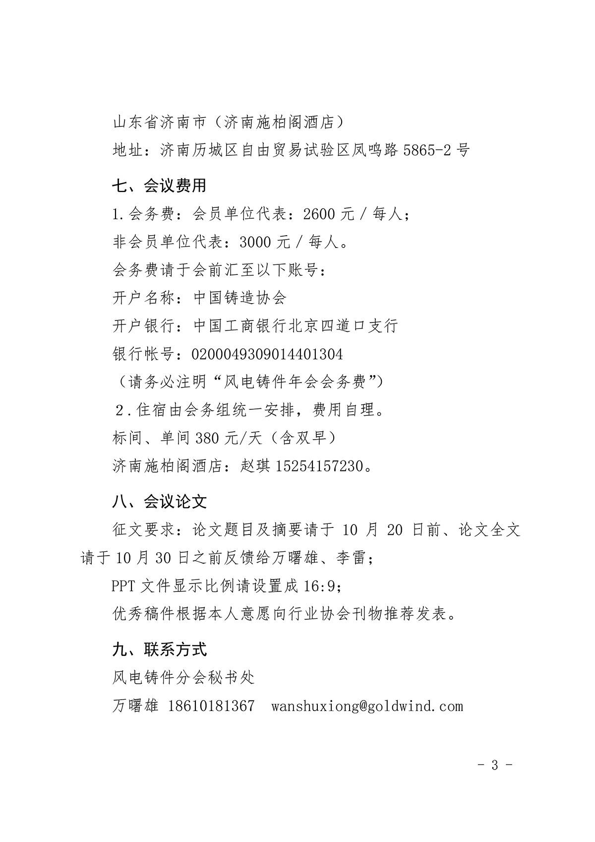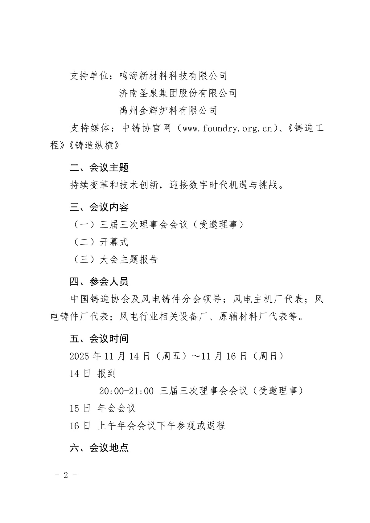 中国铸造协会风电铸件分会年会(2025)参会回执单