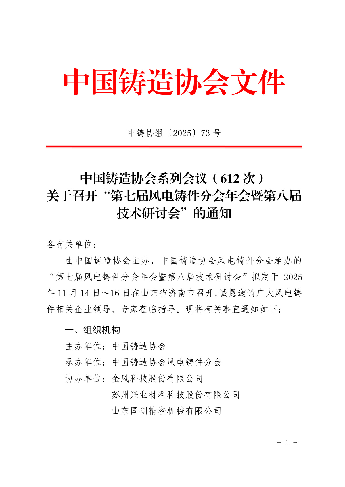 “第七届风电铸件分会年会暨第八届技术研讨会”的通知