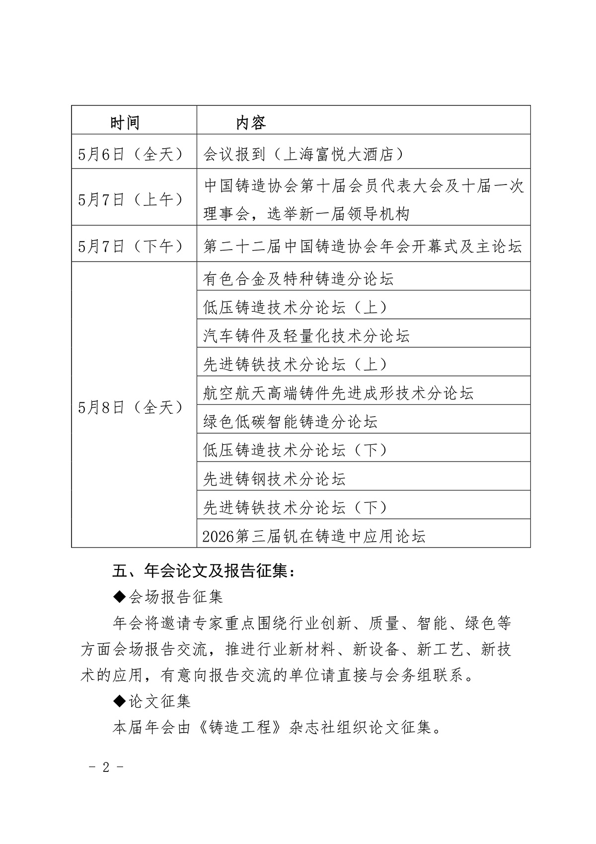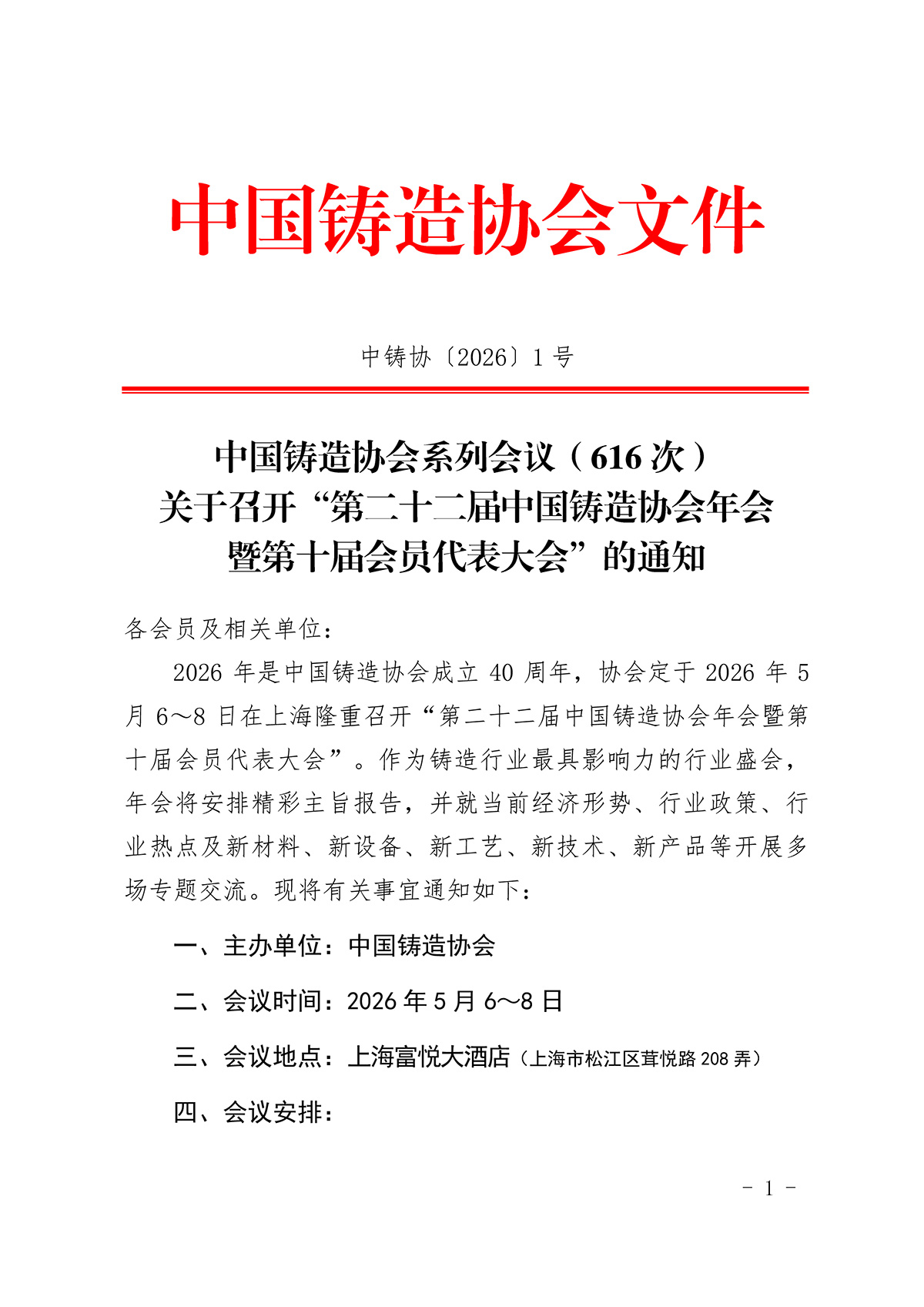 关于召开“第二十二届中国铸造协会年会暨第十届会员代表大会”的通知