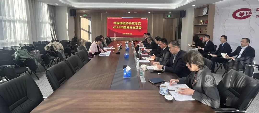 按照中国机械工业联合会党委《关于组织开展民主生活会、组织生活会和民主评议党员有关工作的通知》要求,经报请中国机械联党委同意,中国铸造协会党总支于2026年2月3日召开民主生活会,中国机械联党委常委、总经济师、副秘书长佘伟珍,中国机械联党委工作部刘星出席会议并作现场督导。会议由中铸协党总支书记张立波主持。