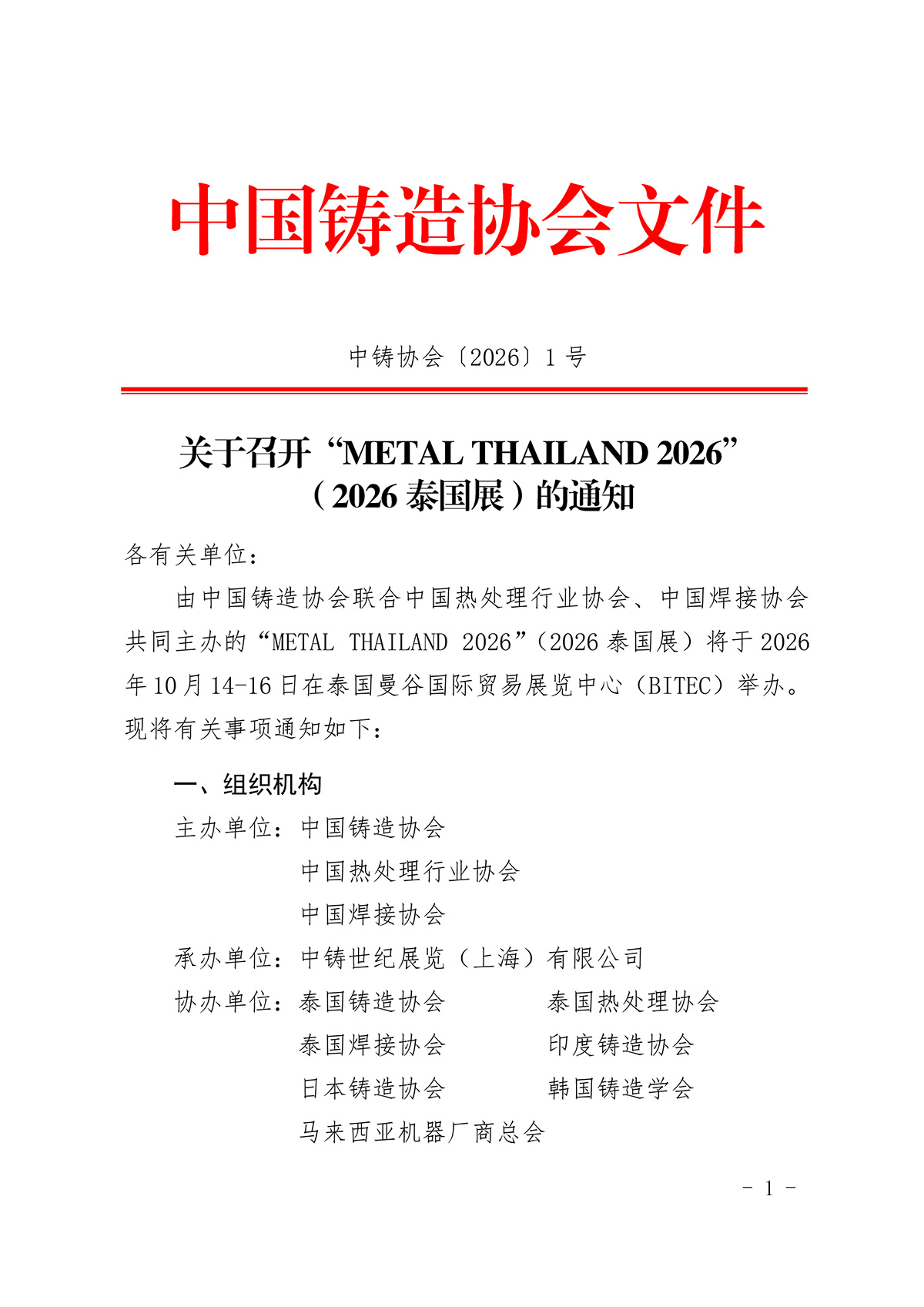 关于召开“METAL THAILAND 2026”(2026泰国展)的通知